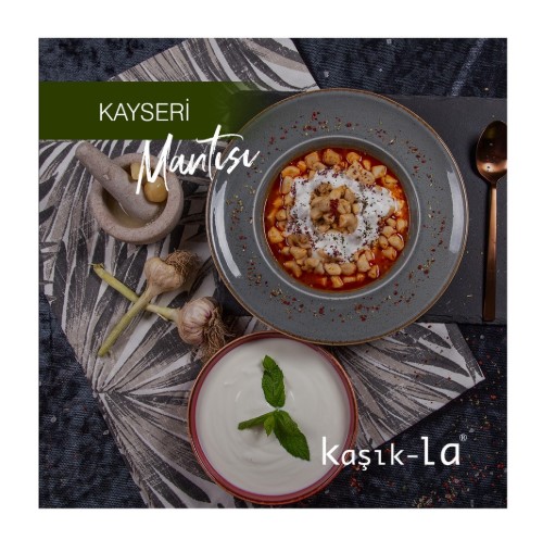 Kaşık-la’ya göre ideal bir Kayseri mantısı, minik boyutlu ve bol iç harçlı olur. İşletmenin mutfağında bu gelenek hem birebir korunuyor hem de ustalıkla modernize ediliyor. Mantılar her gün taze hazırlanıyor; hamur açımından iç harcına kadar her aşama ustalar tarafından el emeğiyle yapılıyor. Kaşık-la’nın müdavimlerinin favori mantılar; klasik Kayseri mantısı, fırınlanmış çıtır mantı, yoğurtlu tereyağlı taş fırın mantısından oluşuyor.